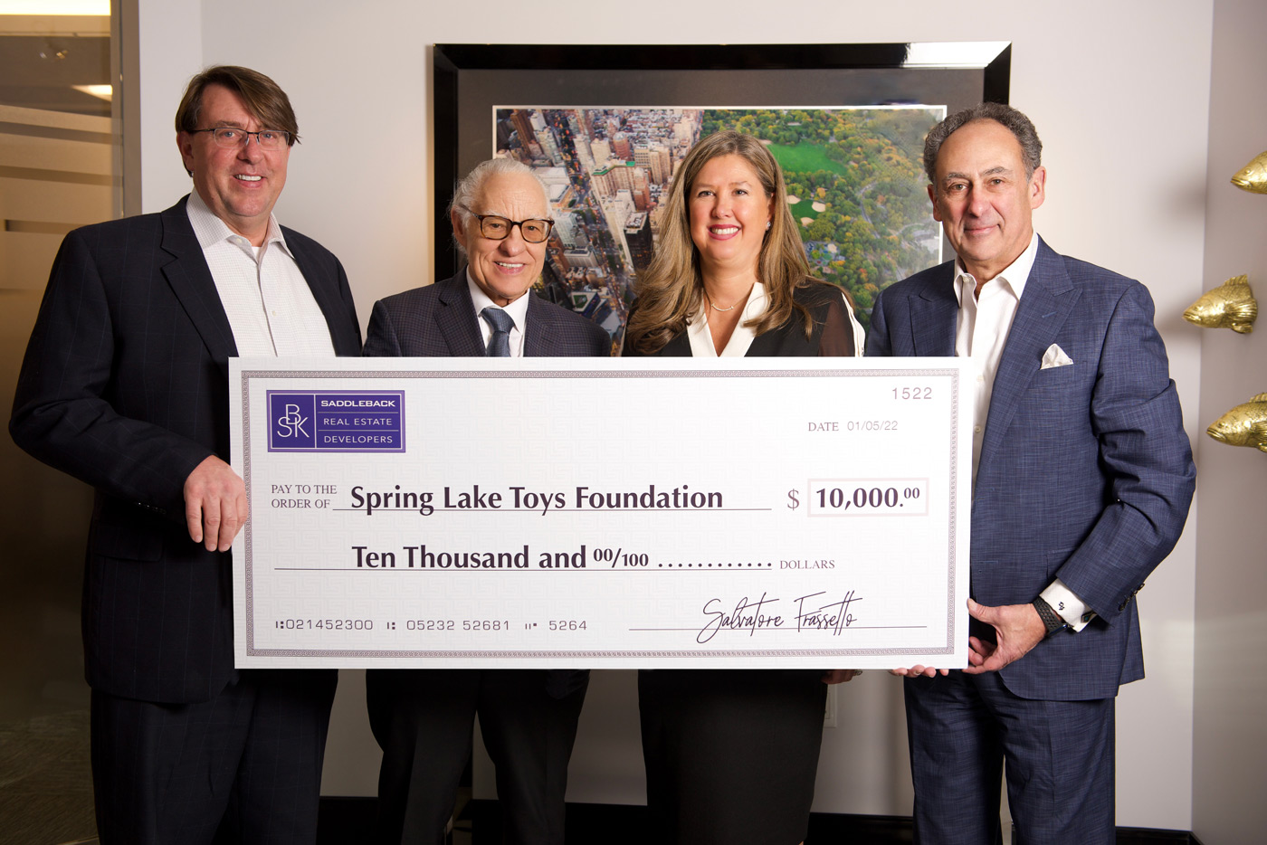Spring Lake Toys Foundation receives donation from Saddleback Real Estate Developers to help kids with rare illnesses